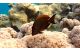Общая окраска от коричневой до пурпурной и синевато-коричневой с небольшими оранжевыми пятнами на голове и груди. У основания спинного и анального плавников имеются небольшие черные пятна, эти плавники имеют бледно-голубую кайму. Черная кайма вокруг шипа на хвостовом стебле.