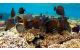 Тело серое, примерно с 8 темно-серыми вертикальными полосами; на каждой полосе расположено от 2 до 3 оранжевых или желтых вертикальных линий, которые распадаются на пятна по направлению к нижней части тела и на анальном плавнике. На голове есть 2 темно-коричневые полосы, первая из которых проходит через глаз. На голове и теле имеется плотный рисунок из небольших светло-желтых пятен. Хвостовой плавник отмечен бледно-голубыми пятнами.