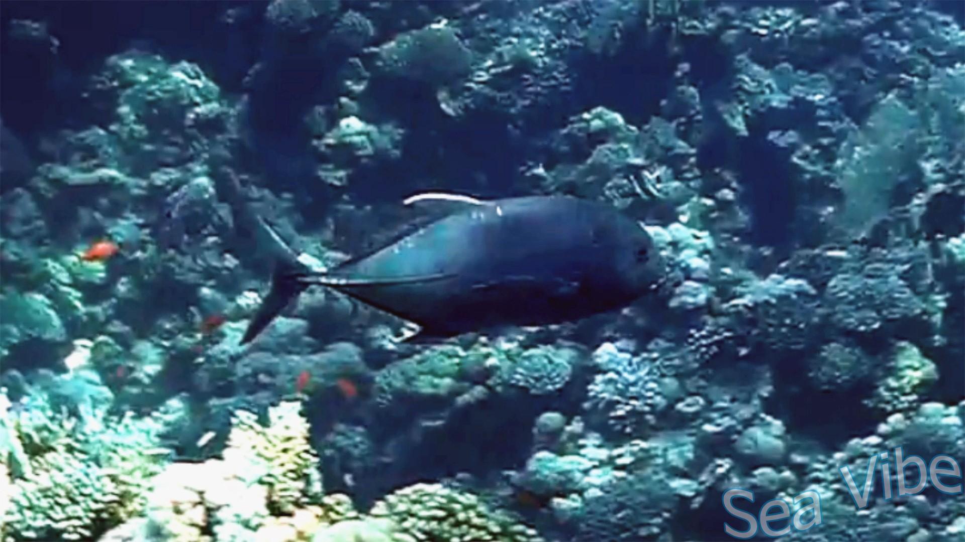Гигантский каранкс (Caranx ignobilis) на месте очистки. Губан чистильщик очищает каранкса от паразитов.