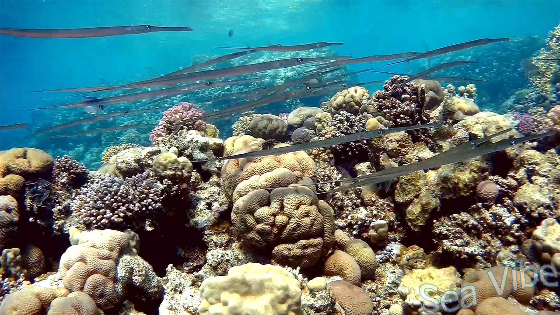 Голубопятнистая Рыба-флейта стая
