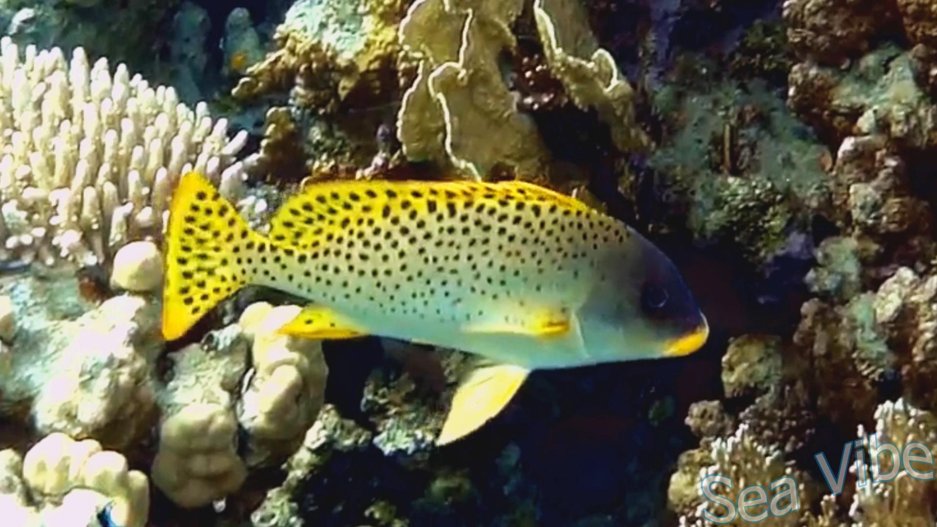 Тело желтовато-серое с зеленоватой спиной и желтоватым животом. Тело и плавники отмечены рядами темно-серых или черно-коричневых пятен. Брюшные плавники длиннее грудных.