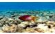 Передняя часть тела красно-коричневая, задняя — белая (контрастная окраска). Характерны крупные черные пятна у основания грудных плавников, а также на анальном и спинном плавниках. Хвостовой плавник желтоватый. Самки и молодь имеют черноватую окраску с белыми пятнами вдоль верхнего и нижнего боков.