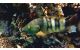 У взрослых особей голова большая и ярко-зеленая, с небольшими пятнами. Губы большие и синие. Грудные плавники желтые, а брюшные, анальный и хвостовой плавники темно-синие. Тело желто-зеленое. Ближе к жаберной крышке находится характерная ярко-желтая отметина на черном фоне. У него длинный бахромчатый хвостовой плавник. Самки и молодые особи имеют большие темные полосы на боках.