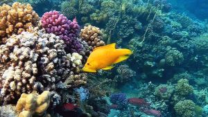 Самки могут быть как ярко-желтыми, так и темно-коричневыми. Встречаются особи с промежуточным рисунком, которые имеют желтые пятна, бледный хвост и иногда с черными грудными плавниками. Рот оснащен сильно выдвигающимися челюстями.