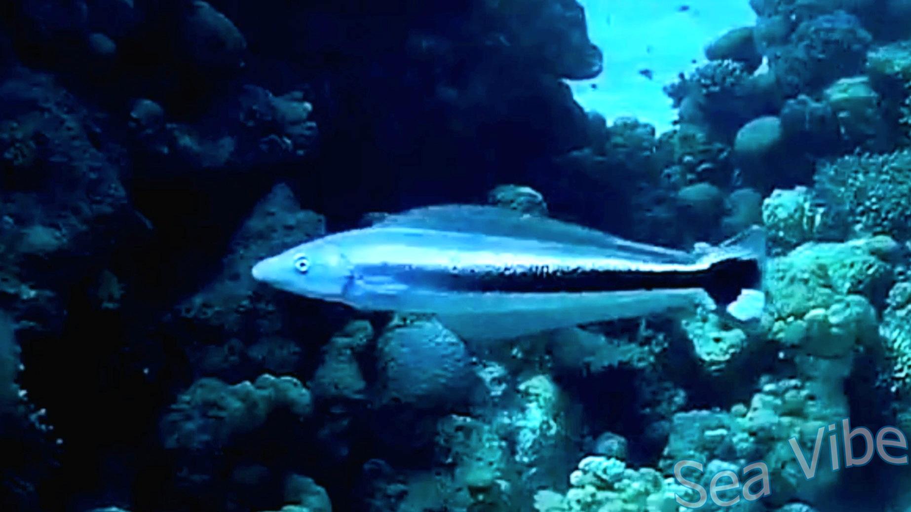 Голова и передняя часть тела голубые. Имеется широкая черная боковая полоса, которая начинается от основания грудного плавника. У взрослых особей на верхней части спины имеется мелкий решетчатый узор с белой областью посередине заднего края хвостового плавника. Вдоль верхнего края сероватого спинного плавника проходит светлая линия, анальный и брюшные плавники белые, а грудные плавники голубоватые.