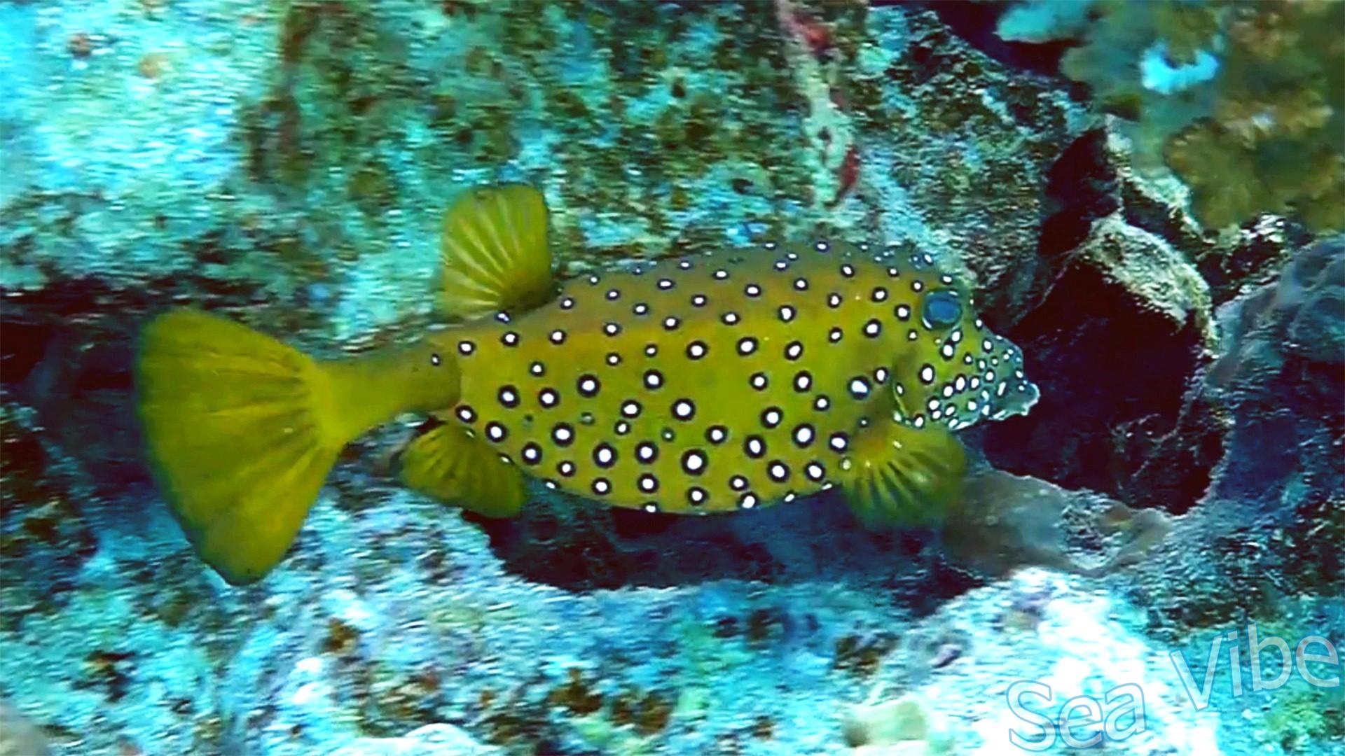 Среднерослые особи светло-коричневые с синими пятнами, окруженными черными пятнами или черной каймой. Более крупные взрослые особи горчично-коричневые с сине-зелеными оттенками и имеют выступ на верхней губе. Тело рыбы защищено экзоскелетом, представленным панцирем из сросшихся костных пластин. Дополнительным защитным механизмом помимо панциря является способность при опасности выделять токсичную слизь.