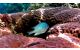 Окраска серебристая, переходящая в желтовато-белую на брюхе и нижних сторонах. Спина и дорсальная часть головы в основном зеленые, с широкой, вертикально вытянутой зеленоватой полосой на каждой чешуе тела. На щеках часто видны размытые вертикальные темные полосы. Задние края предкрышки и верхняя половина жаберной крышки темно-серые. Срединные плавники полупрозрачные до зеленовато-белых, нижний и верхний края хвостового плавника узкочерные. Брюшные плавники бледно-желтые до белых. Грудные плавники полупрозрачные с небольшим темным пятном у основания верхних лучей.