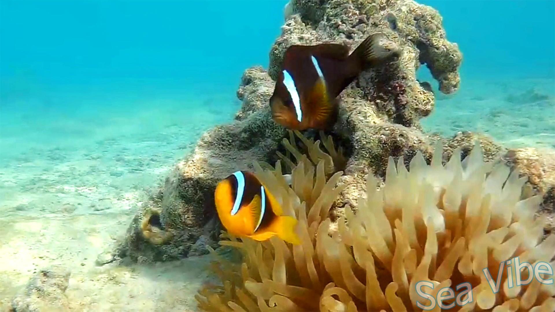 Тело желто-оранжевого или коричневатого цвета с двумя характерными белыми вертикальными полосами с черной окантовкой. Первая полоса за головой шире второй, расположенной в средней части тела. Хвостовой плавник всегда желтый. У некоторых особей окраска сильно темнеет, при слабом освещении под водой жёлтый может выглядеть серым или почти исчезать, молодые или стрессовые особи могут быть почти полностью тёмными. Существуют в симбиозе с актиниями (морскими анемонами). У Amphiprion bicinctus самки обычно темнее и крупнее самцов. Они имеют насыщенный оранжево-коричневый или даже темно-коричневый оттенок, в то время как самцы более яркие и оранжевые. Как и все рыбы-клоуны, они являются гермафродитами: более мелкие самцы могут стать самками, если доминирующая особь погибает.