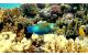 Самцы обычно в основном зеленые с лавандово-розовыми краями чешуек, хвостовой стебель заметно светлее тела. Голова с зеленой межглазничной областью и затылком, две короткие зеленые полосы, идущие от глаза, и зеленая полоса или пятно под глазом, которое раздваивается на две, окаймленные снизу розовыми полосами до верхней губы и подбородка. Обычно имеется размытая желтоватая область под спинной половиной грудных плавников.