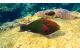 Цвет самца красновато-коричневый спереди с красной верхней губой и темными полосами вокруг рта, зеленоватый сзади с темными краями чешуи. Темные края чешуи создают сетчатый узор. Вокруг рта темные полосы. Ключевой признак — ярко-зеленое или желтоватое пятно с темной каймой сверху за глазом. Спинной плавник желто-зеленого или красноватого оттенка. В отличие от самок, самцы Scarus niger выглядят более зелеными и контрастными.