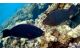 Самец красновато-коричневый спереди с красной верхней губой и темными полосами вокруг рта, зеленоватый сзади с темными краями чешуи. Темные края чешуи создают сетчатый узор. Вокруг рта темные полосы. Ключевой признак — ярко-зеленое или желтоватое пятно с темной каймой сверху за глазом. Спинной плавник желто-зеленого или красноватого оттенка. Цвет самки темно-синий или коричневато-чёрный. Голова, брюхо и плавники красноватые, бока с волнистыми полосами, а вокруг рта и глаз темно-зеленые полосы. Отсутствует желтоватое пятно сверху за глазом. В отличие от самок, самцы Scarus niger выглядят более зелеными и контрастными.