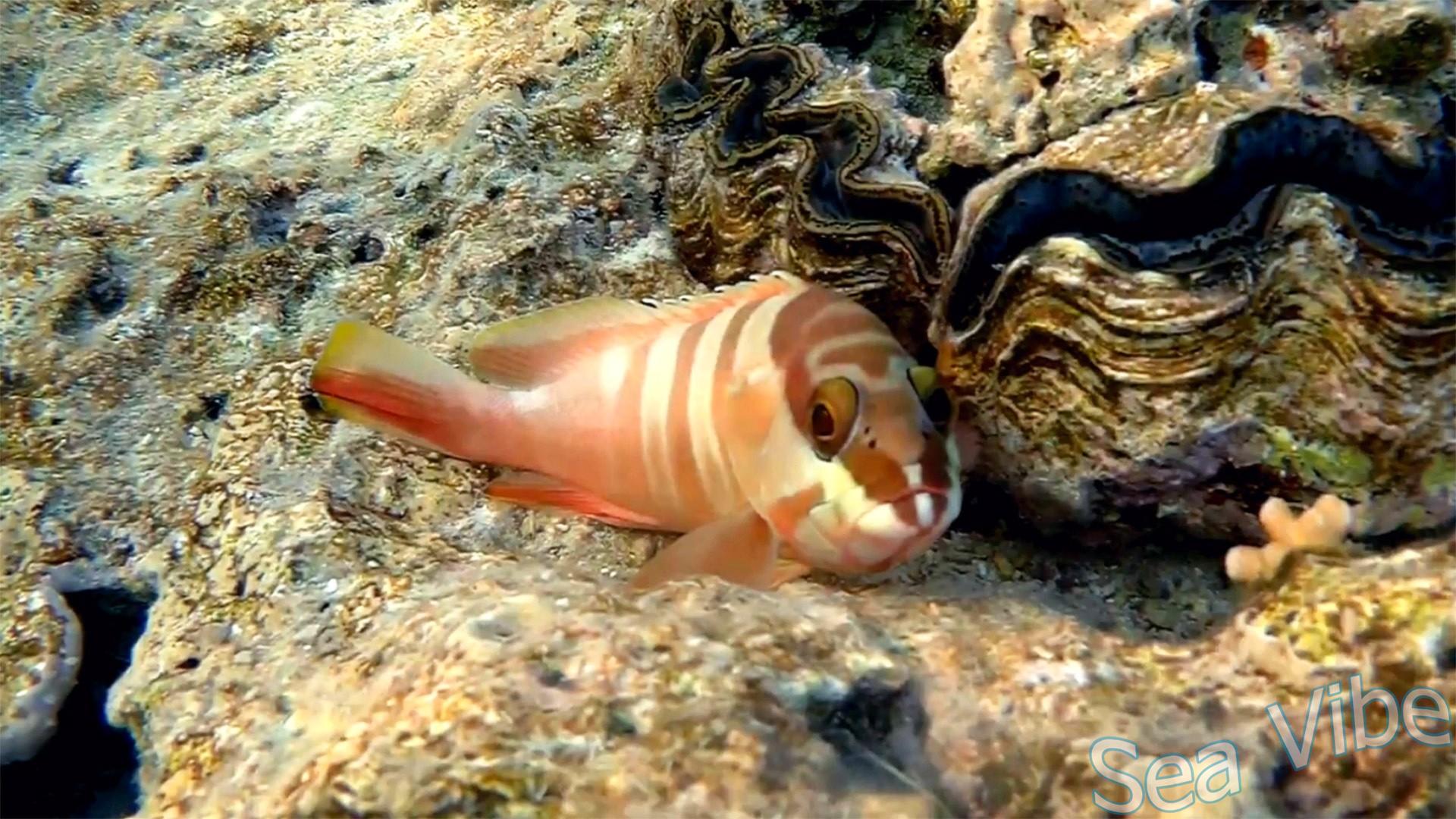 Окраска изменчива и варьируется от бледно-зеленовато-серого до бледно-красно-желтого и алого. Часто имеют 5 или 6 слабых темных полос, последняя из которых находится на хвостовом стебле. Чешуя на верхней части тела имеет светлый центр и темный задний край, что создает нечеткий клетчатый узор. Наружная мембрана колючей части спинного плавника черная или темно-красная.