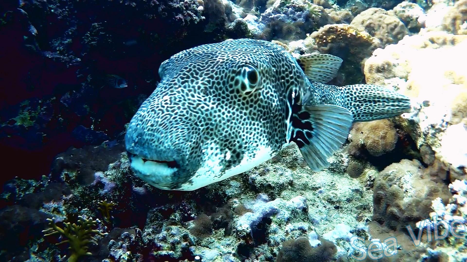 Фоновая окраска варьируется от белой до серой, а тело гармонично усеяно черными пятнами. Брюшная область обычно более чистая. Кожа рыбы лишена чешуи и покрыта маленькими иглами.