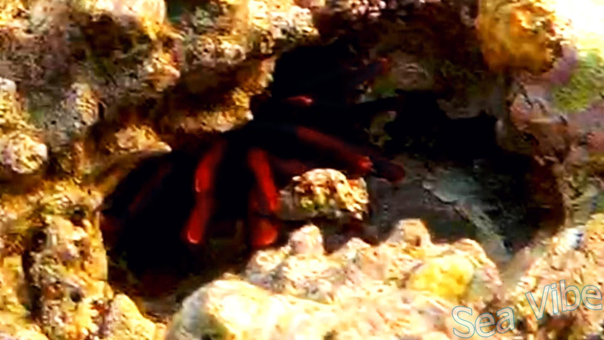Красный грифельный еж (Heterocentrotus mammillatus) и Рак-отшельник.