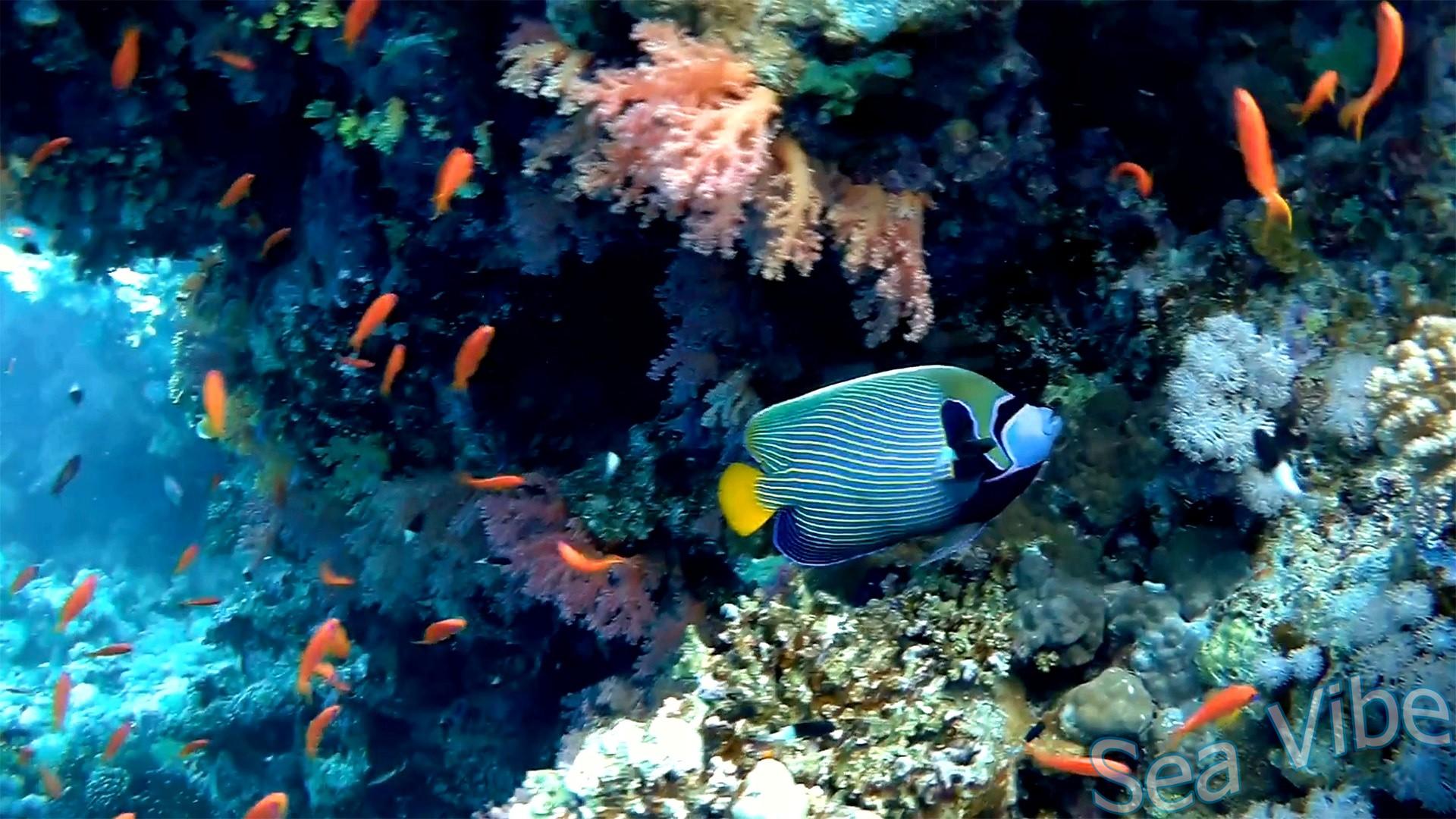 Сказочный псевдантиас (Pseudanthias squamipinnis) и Императорская рыба-ангел (Pomacanthus imperator) в бухте Рас Ум Сид.