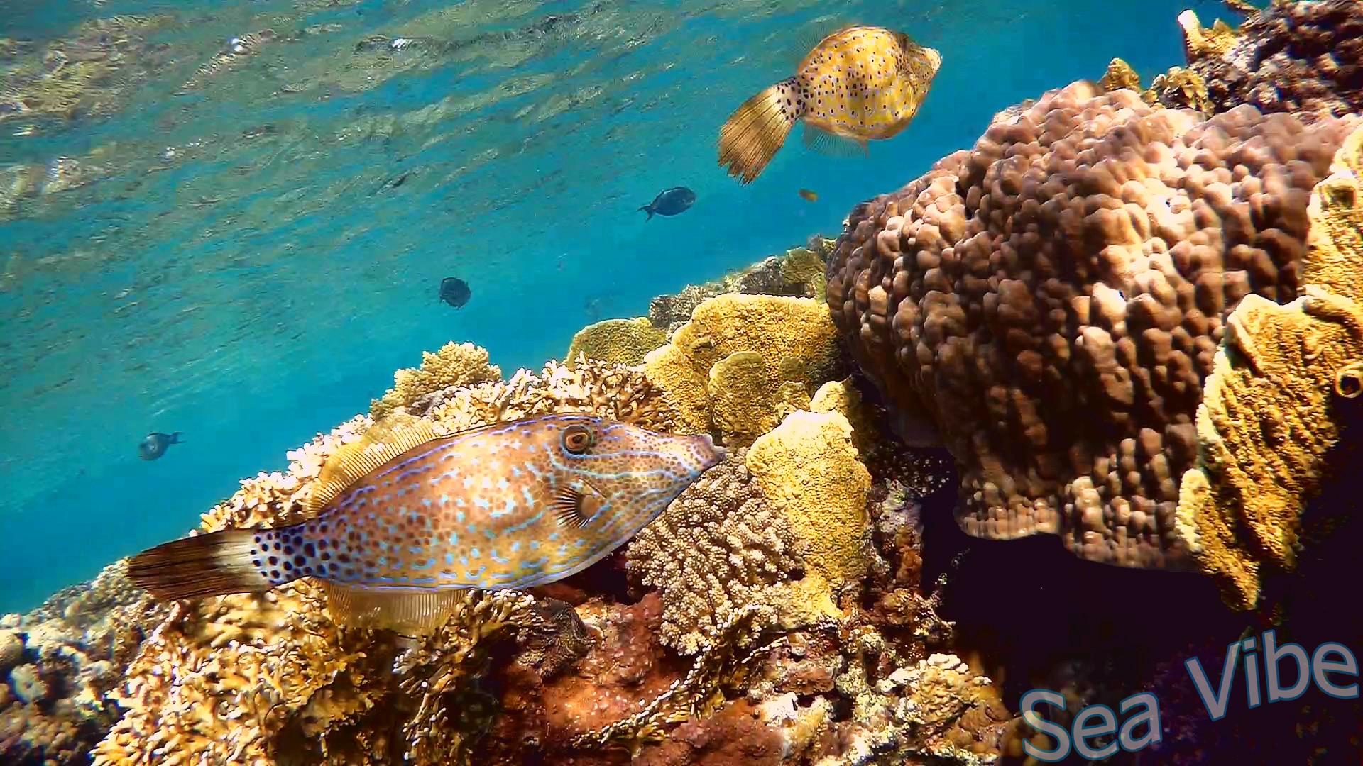 With two Scrawled filefish along the reef of Abu Dabab Bay.