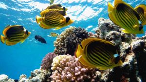 Diagonal butterflyfish (Chaetodon fasciatus) school
