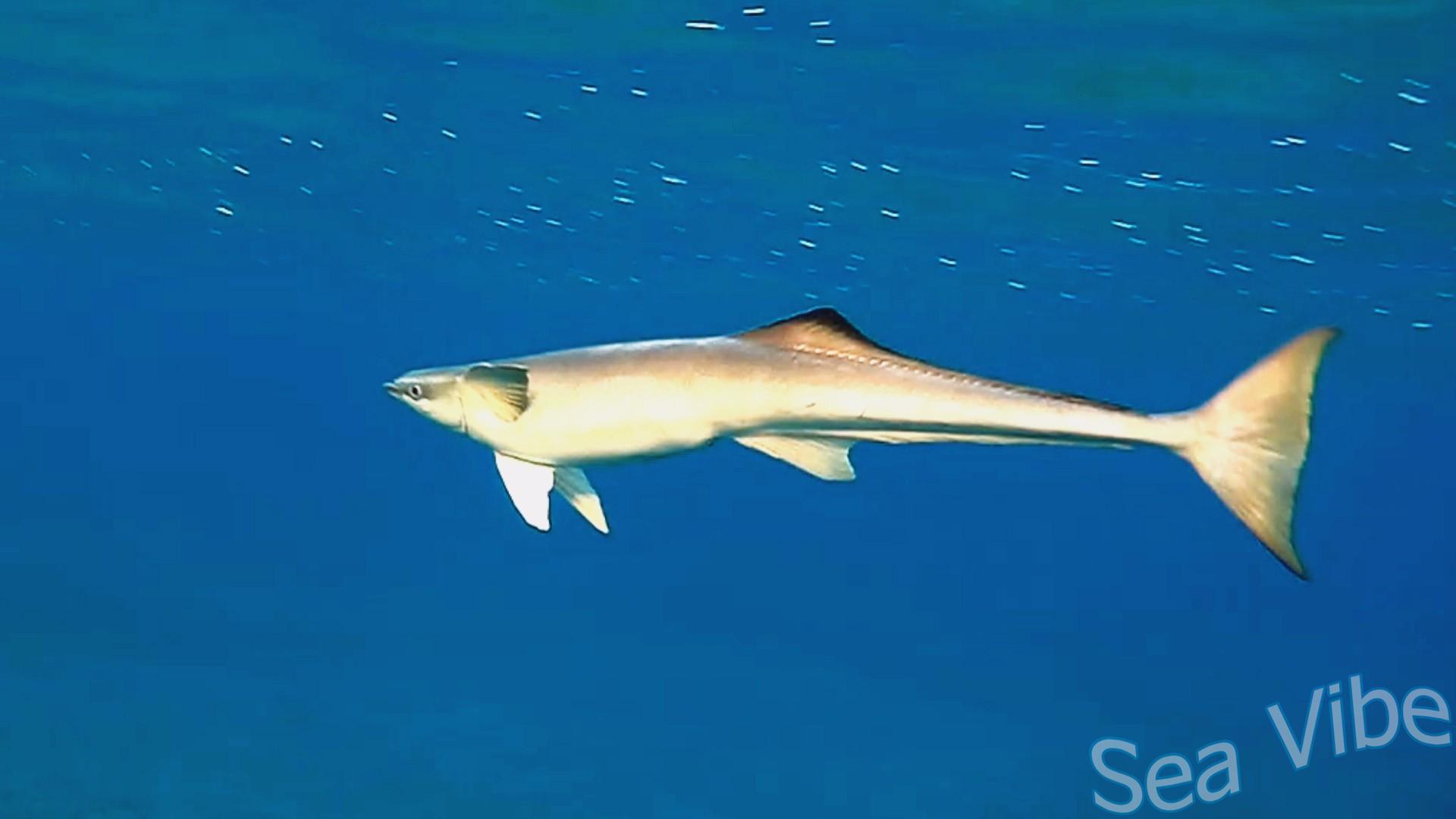Live sharksucker (Echeneis naucrates) in search of a free Green turtle.