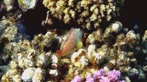 Males have brown spots on the head and reddish spots elsewhere, and reddish dorsal and caudal fins. Branched tentacles above the eyes.
