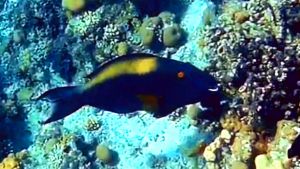 Females (Initial Phase) are dark purplish to reddish brown, peppered with black spots below, with a large pale yellowish area below the dorsal fin. Found only in the Red Sea.