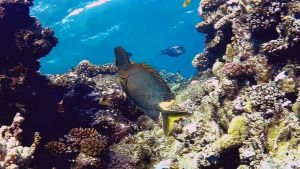 The fish's oval body is covered with small and closely spaced dark brown or black spots on a white background, creating a honeycomb pattern. Fork-shaped caudal fin. The dorsal, anal and pelvic fins of this fish rise with retractable, spiny, poisonous rays. They frequently show a light, whitish to yellowish saddle mark on the caudal peduncle.