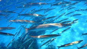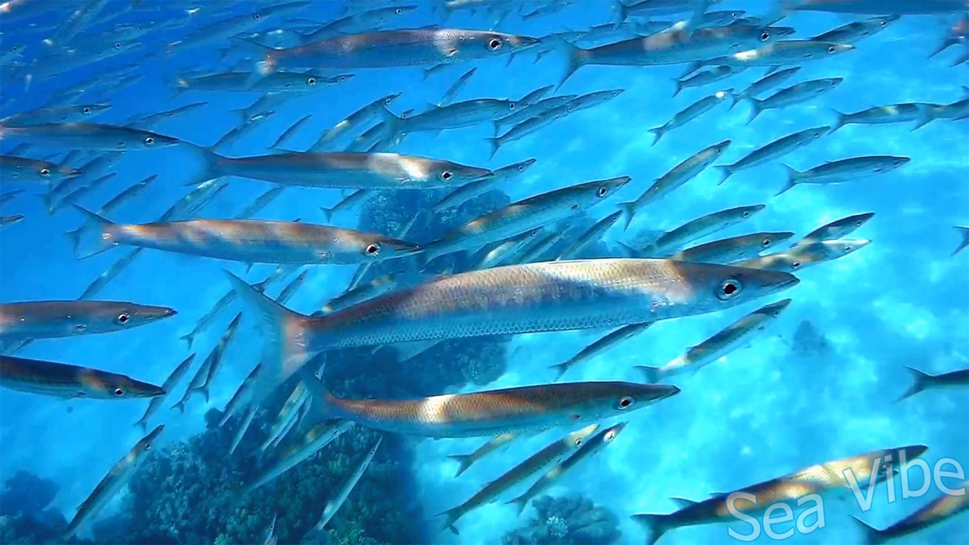 Yellowtail barracuda (Sphyraena flavicauda) school