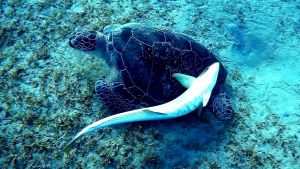 Green turtle and Live sharksucker