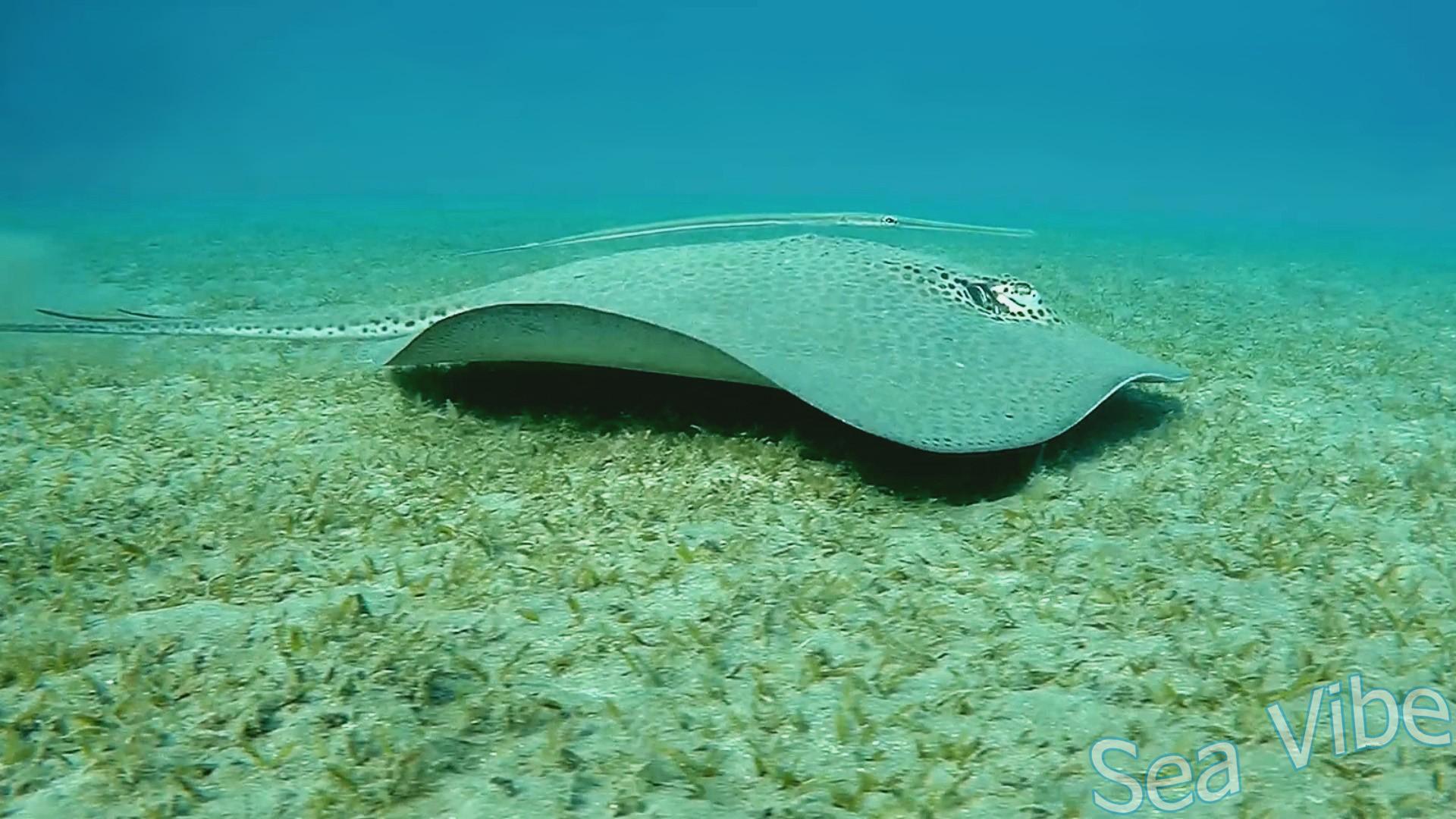 Honeycomb stingray and Bluespotted cornetfish - duet synchronized swimming. It is not clear what binds them together.