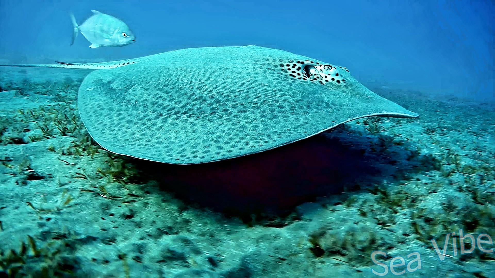 Honeycomb stingray and Orangespotted trevaly - duet synchronized swimming.