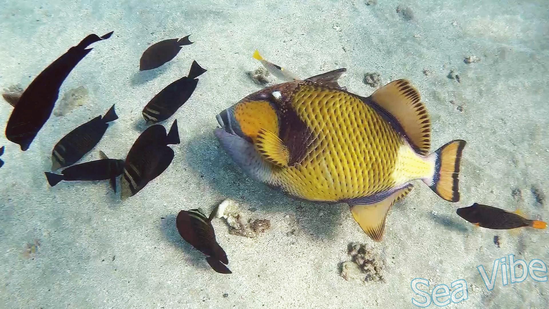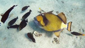 Titanium triggerfish unsuccessful attempt to get a treat